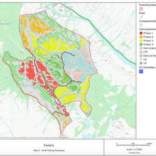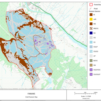 As part of Tilhill Forestry’s commitment to the UK Forestry Standard (UKFS) and certification under the UK Woodland Assurance Standard (UKWAS), a new Long-Term Forest Plan is being produced for Fanans Forest. The plan will set out proposed operations for the next 20 years and will look to gain felling approval for the next 10 years through Scottish Forestry. An outline felling programme is shown on the attached Concept Map.